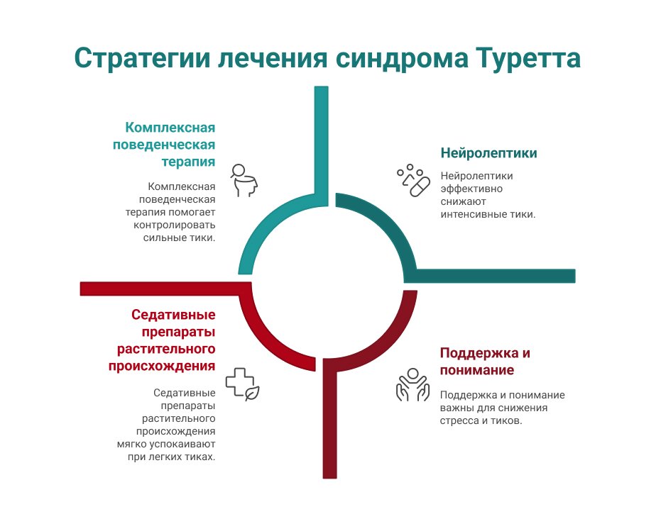 Эффективная стратегия для облегчения проявлений синдрома Туретта – применение специальных психотерапевтических подходов. Одной из наиболее результативных методик считается комплексная поведенческая терапия, которая помогает пациентам осознавать свои эмоции, распознавать ситуации, обстоятельства, способные провоцировать или усиливать тики, постепенно вырабатывать навыки контроля над ними.